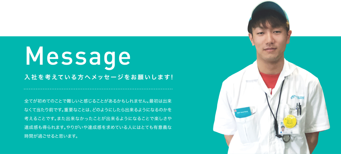 積極性を忘れず、業務の幅を広げて、信頼され、周囲に目配りができる、ベストロジ三重が 掲げるチームワークと広い視野を持った人材になりたいと思っています。